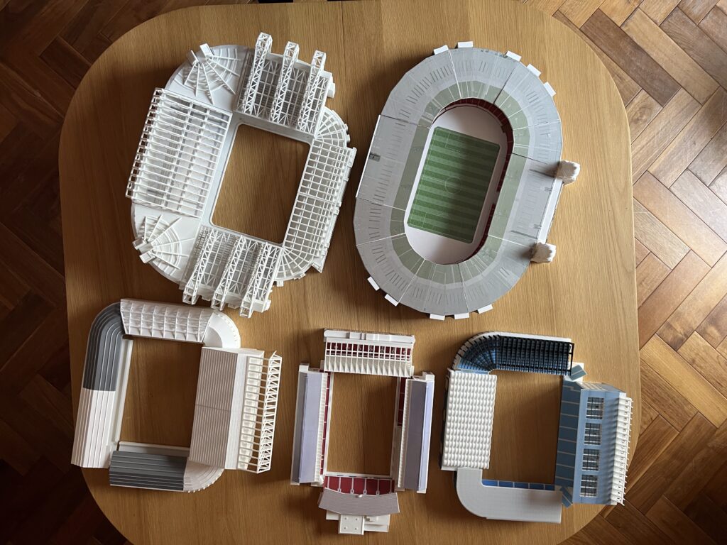 Our journey started in 2024. Our founder, Dan, was involved in the real life design and construction of football stadiums in the UK and abroad. His passion for football stadiums spilt over into a love for construction of model replica stadiums at a scale small enough to display in homes, but large enough to see the intricate detail of the stadium’s design. After building numerous of his famous stadiums for work and pleasure, he embarked in 2024 in turning this interest into a business, building and selling stadiums to fellow enthusiasts who shared a similar passion for stadiums.