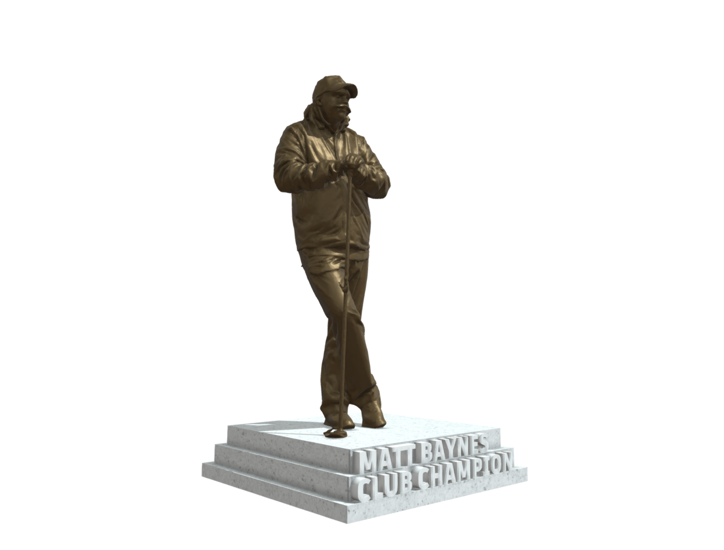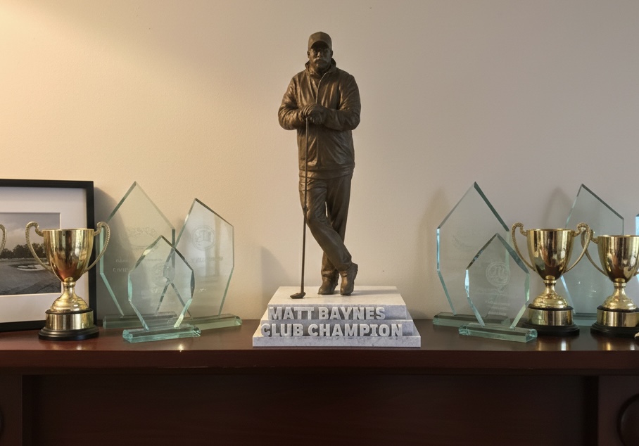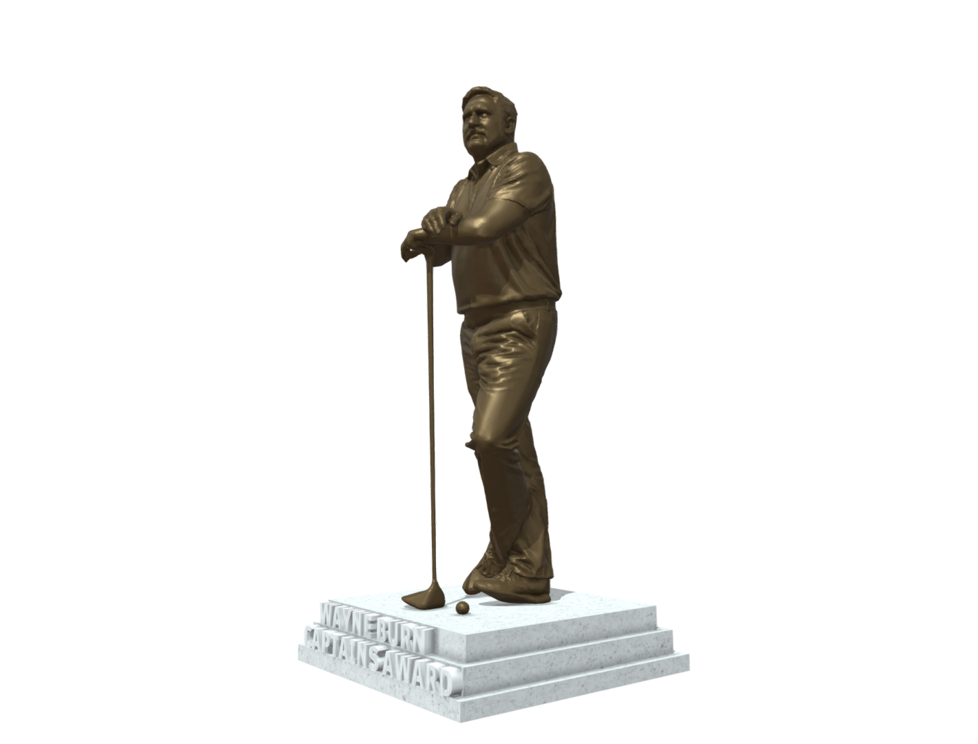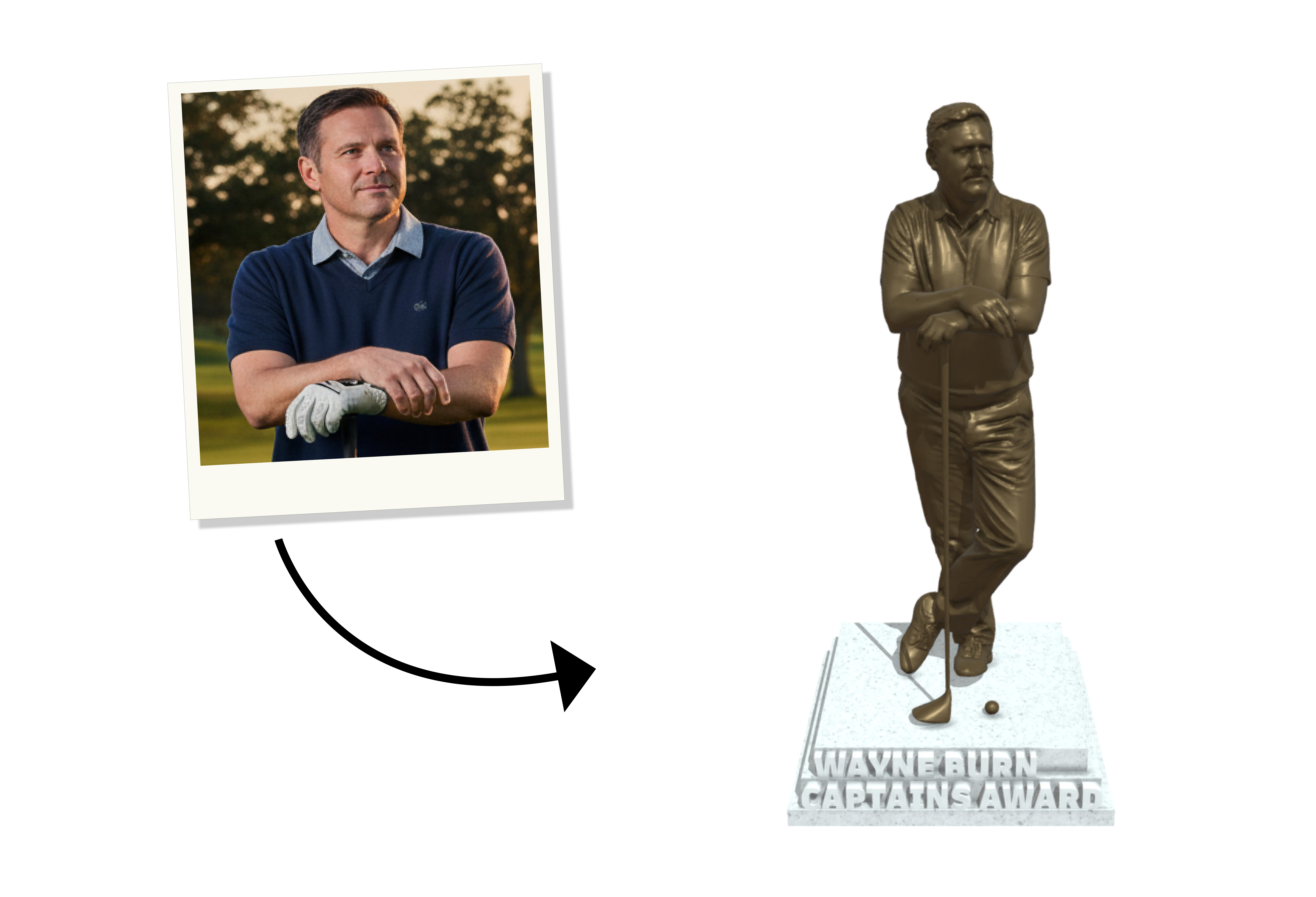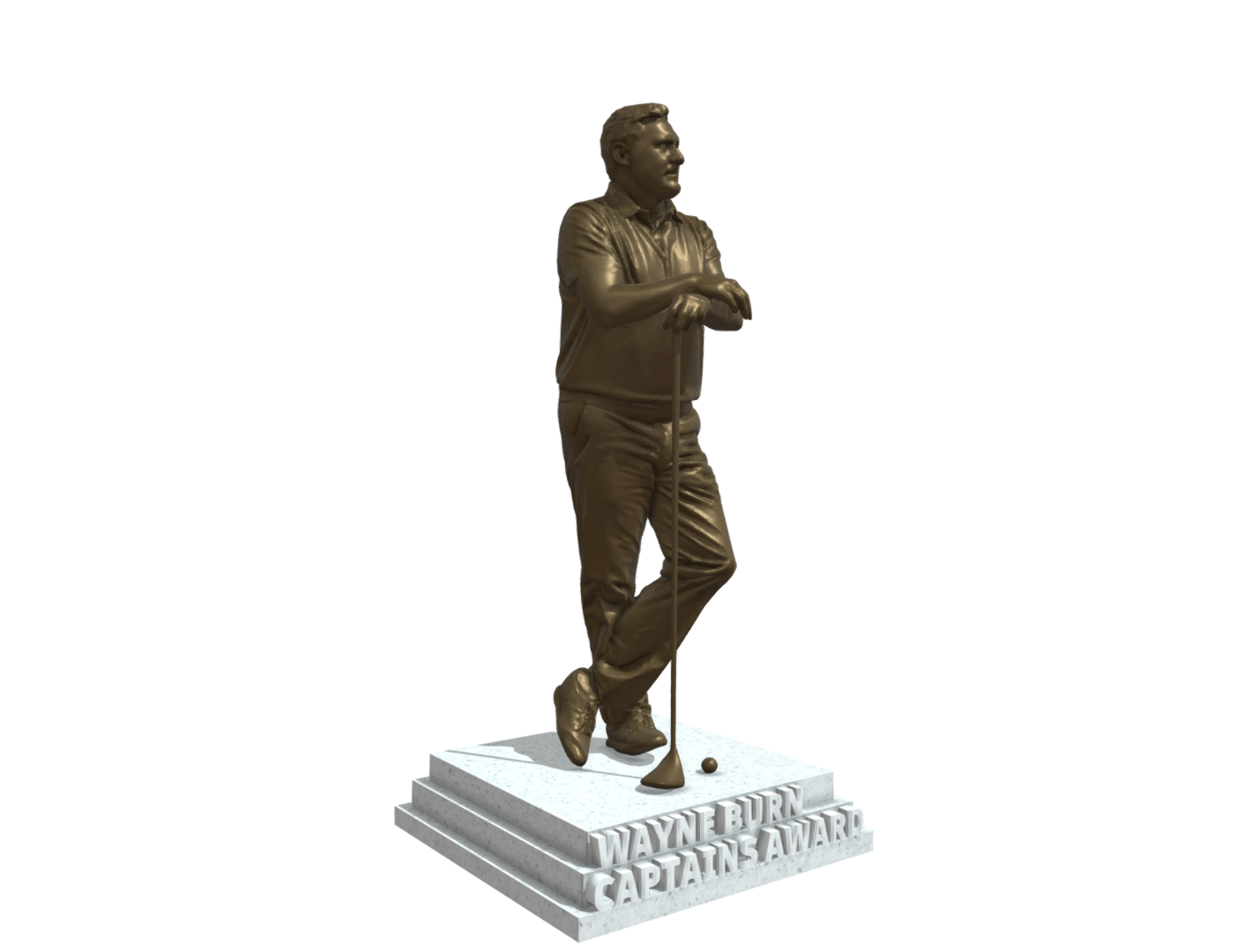 Crate a fully Custom Golf Statue for awards, events and ceremonies. Send us your photo and we will create a unique personal golf statue created from a full-body photo of the golfer. – We will create a statue customised to pose and action, ideal for club champions, tournament winners, or standout golfers. The ultimate bespoke golf trophy!