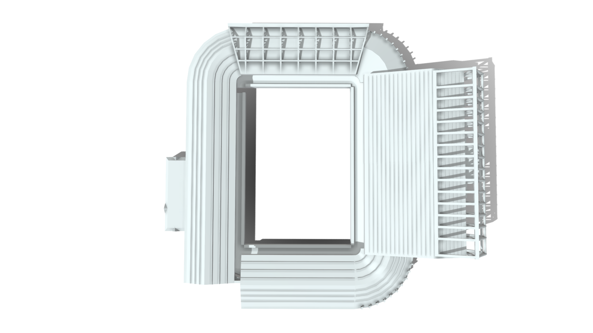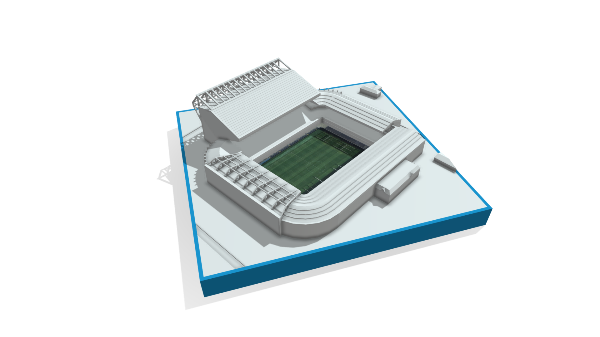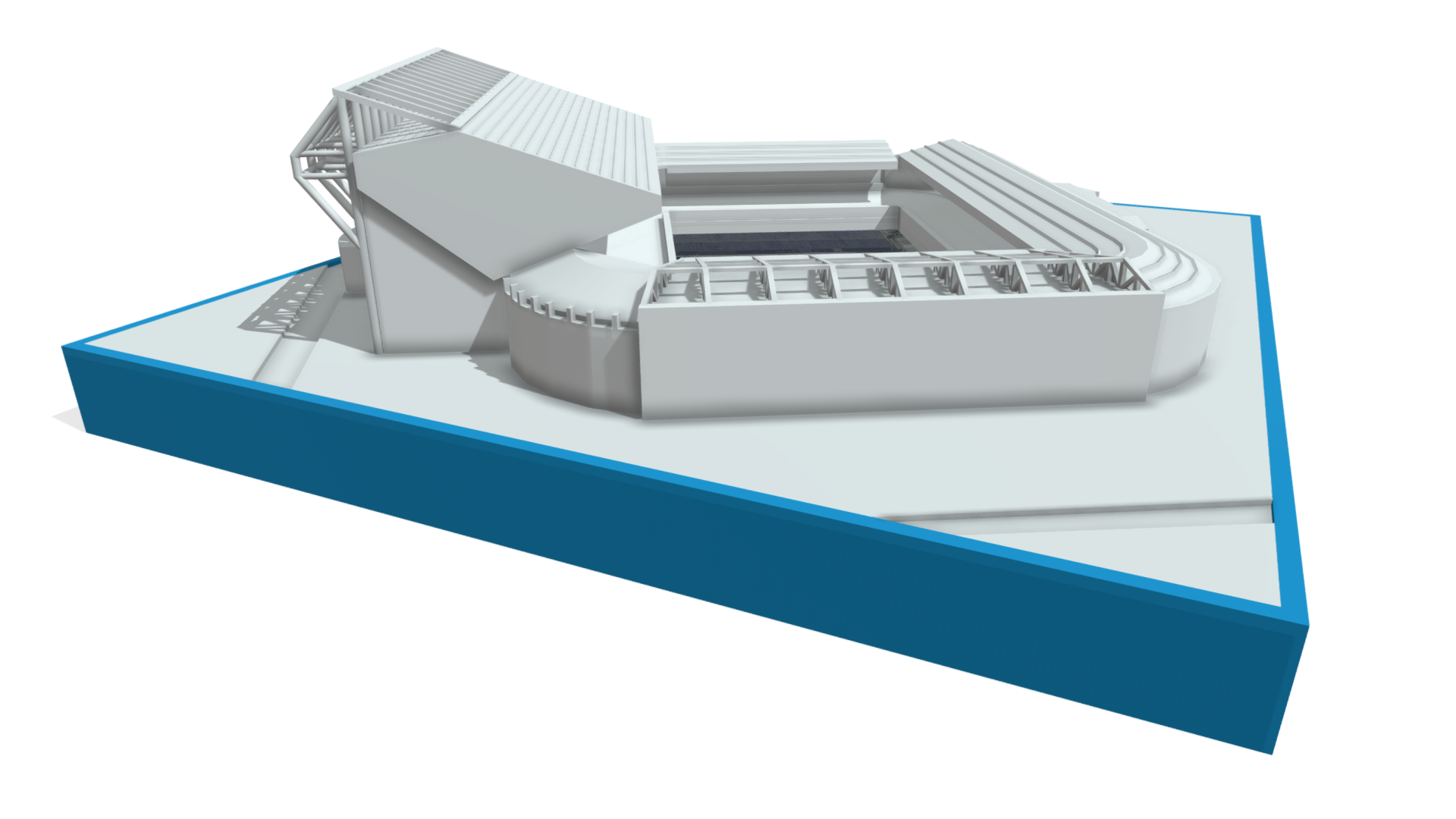 A clean, minimalist Elland Road stadium model capturing the distinctive form and layout of Leeds United’s famous home ground.